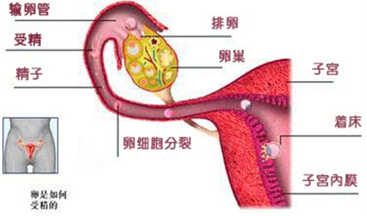 如果男女性交时,恰好是在卵巢排卵前后,精子和卵子在输卵管里即可相遇。虽然有许多精子包围 1 个卵子,但只能有一个精子钻入卵子。精子头部一旦钻入卵子,卵子周围的透明带和卵膜迅速发生变化,能防止另外精子的钻入。精子头部进入卵子后,逐渐移向中心,最后他们的细胞核融合为一个,这时的卵子叫做孕卵或受精卵,便发育成为新的个体。